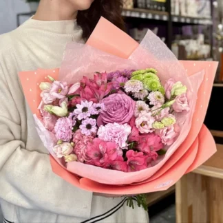 Buket Romantični kompliment od raznobojnog svežeg cveća