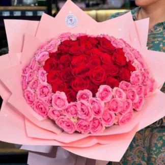Buket Ruža sa igračkom u elegantnom roze papiru