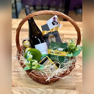 Pletena korpa Grašac predstavlja vrhunski izbor za one koji uživaju u pažljivo odabranim delikatesama i kvalitetnim pićima. Sadrži bogat asortiman proizvoda visokog kvaliteta, uključujući Eugen čokoladu, Jacobs kafu, Ferrero Rocher, humus, te flašu izuzetnog vina Grašac – sve elegantno aranžirano u tradicionalnoj pletenoj korpi. Uz dodatak umetne trave i dekorativnih grančica, korpa odiše estetskom savršenstvom i predstavlja pravo umetničko delo.