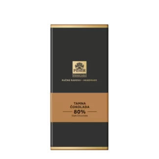 Premier čokolada sa 80% kakao delova je prava poslastica za ljubitelje tamne čokolade. Svaka kockica oduševljava svojom bogatom i intenzivnom čokoladnom aromom, pružajući neodoljivu senzaciju na nepcu. U elegantnom pakovanju od 100g čistog uživanja, ova tamna čokolada je savršena za lične trenutke opuštanja ili kao stavka poklona.