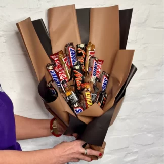 Poklon aranžman Raffaello srce je idealan za izražavanje najdubljih emocija. Sastavljen od pažljivo posloženih Kinder štanglica koje formiraju srce, ovaj poklon je obavijen crvenom ukrasnom trakom i mašnom, koja dodaje sofisticiranost i ženstveni šarm. Centralni deo čine umetni roze cvetići i Raffaello kuglice – za uživanje u svakom zalogaju.
