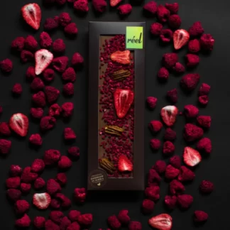Ono što čini Reel čokoladu posebnom je njen ekskluzivan sastav. Liofilizovane maline, jagode i hiroki orasi čine je ne samo ukusnom, već i nutritivno bogatom. Liofilizacija zadržava svežinu i intenzivan ukus voća, dok dodatak hrskavih oraha pruža savršenu harmoniju tekstura. Idealan je izbor za sve ljubitelje čokolade koji traže nešto posebno i autentično za svoje nepce.